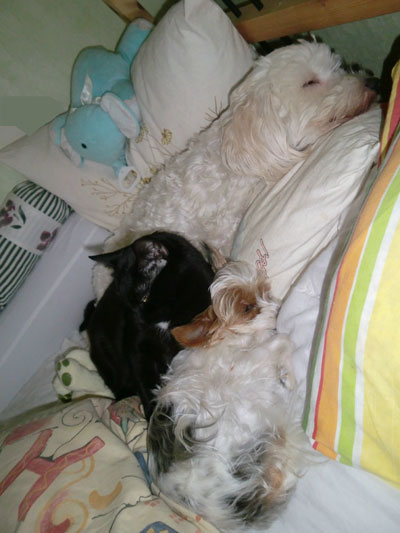 ... zeigt sich mein (gar nicht!)-Fehler heute Morgen von seiner weißen Schokoladenseite :-) Das ist das, was eine stolze Hunde- und Katzenmama am Morgen zu sehen wünscht: