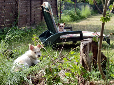 Tisch und Stühle von irgendeiner Terasse irgendeiner Wohnung irgendwo in Deutschland (es waren ja in den vergangenen Jahren 9 verschiedene...), haben wir bereits "rückgeführt". Und ich habe mir von freundlichen Gartennachbarn sagen lassen: Wenn man sich so einen Garten zulegt, dann wird man sesshaft... Na bitte, wer sagt's denn! Statt Umzug eben Schrebergarten. Fein ist das. Vor allem für die Hunde :-)