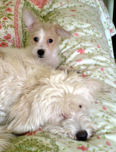 Zunächst dachte ich, es sei wegen Nanni (daher auch diese Namen ;-) Aber die war nicht das wirkliche Objekt der Begierde Hanni's. Die kleine Pudelin kam in die Wohnung geschlenkert, hat schwänzchenwedelnd alles angesehen und ist dann genüsslich an den Futtertrog gewackelt, um sich erstmal das Bauchi voll zu schlagen. Na fein!! Nix krank! Einfach nur Heimweh (??) Und das nach anderthalb Tagen bei uns??