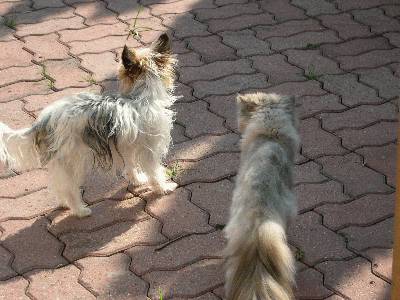 Eine verknotete, unglückliche Perserkatze, eine erst seit 4 Wochen bei uns lebende Yorkshire-Hündin und eine verschämte Mama.