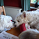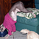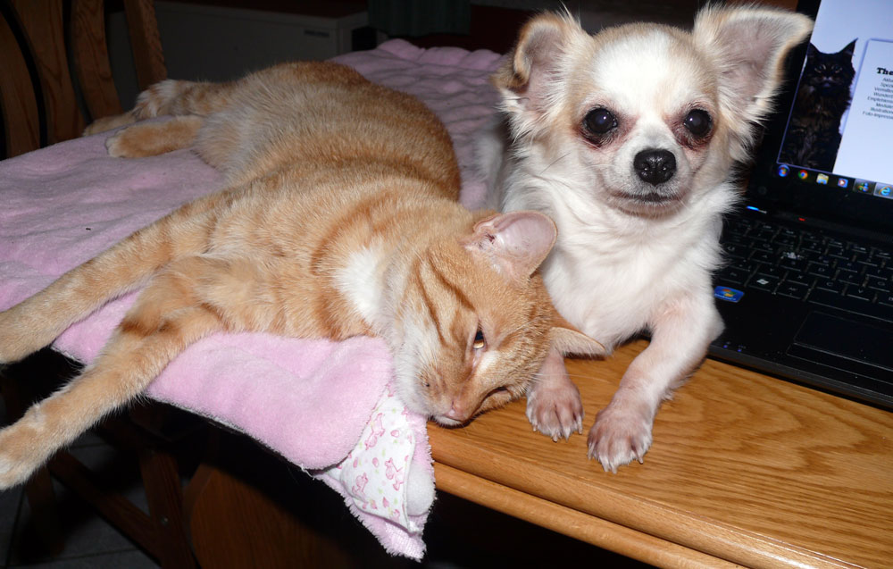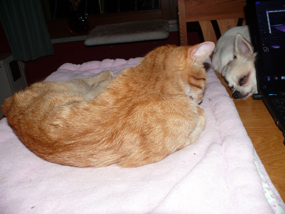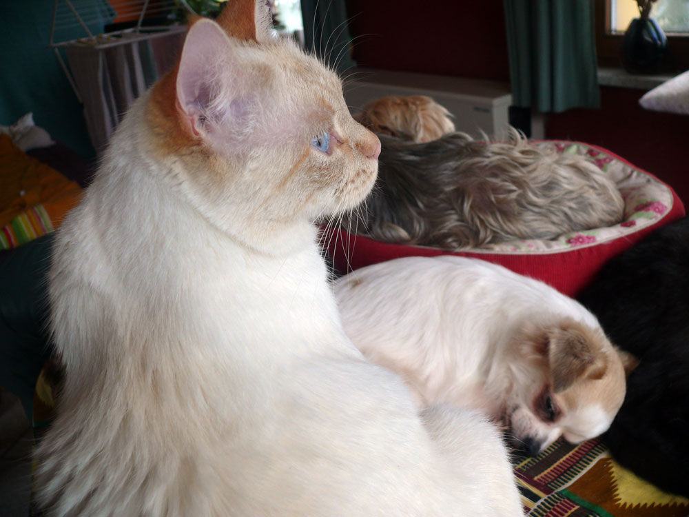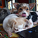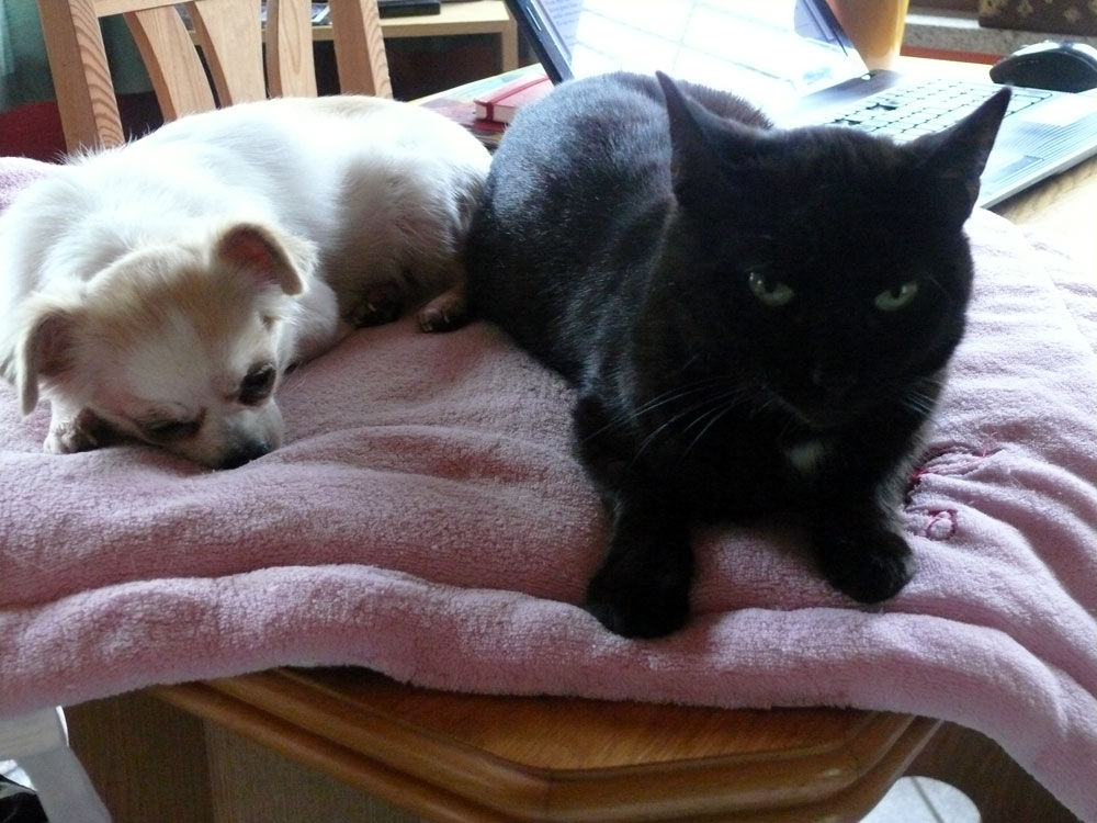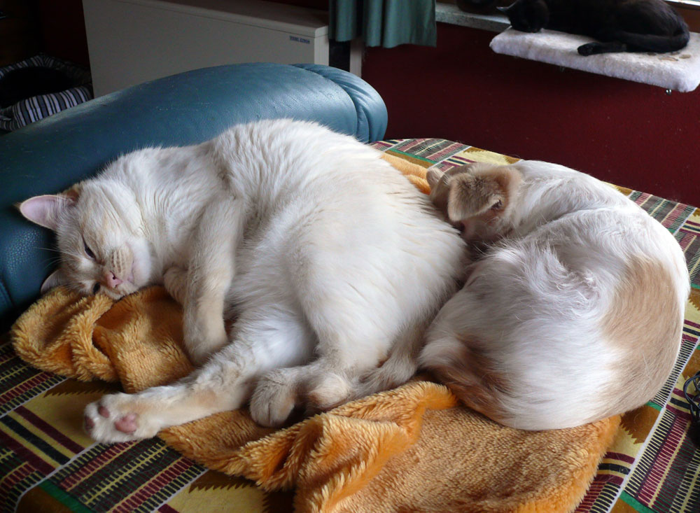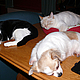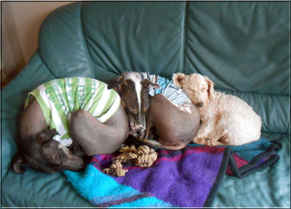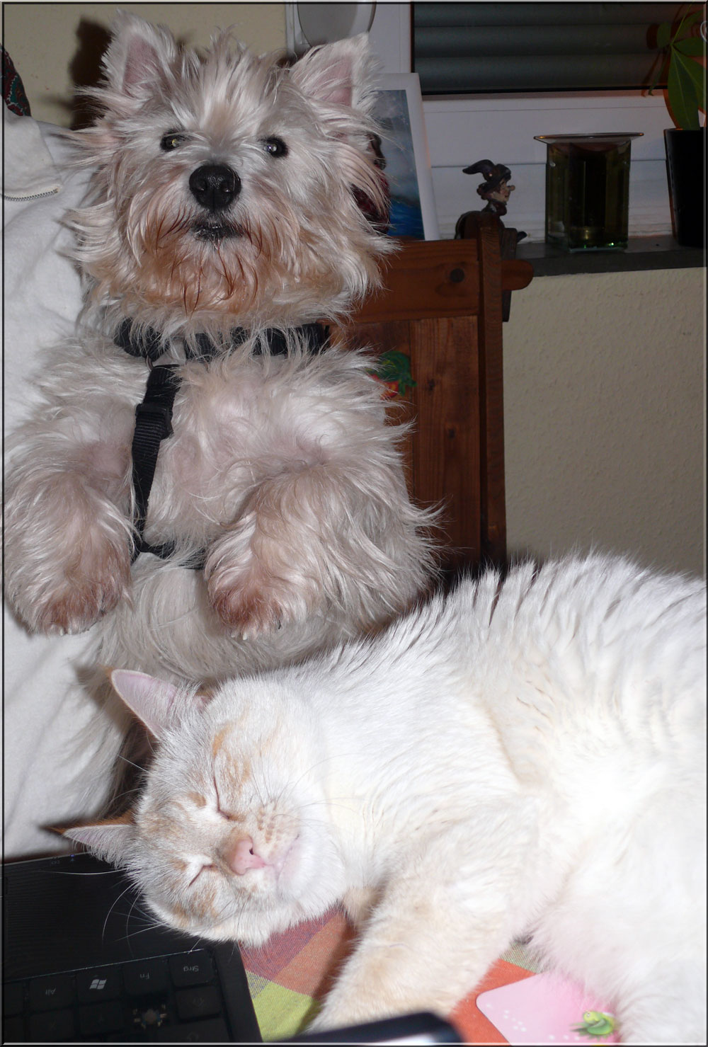 Es ist wahr: in der Hundefamilie gibt es keine Ausnahmen. Was einer darf, dürfen alle. So kann es aber passieren, dass der Arbeitsplatz mit den "kleinen Mädchen" neben dem Laptop - bisher doch so heimelig eingerichtet - plötzlich ein gaaanz klein wenig ... überbelegt ist. Weil: was kleine Mädchen dürfen... (...dürfen auch größere Mädchen oder auch Katzen oder auch...) :-)