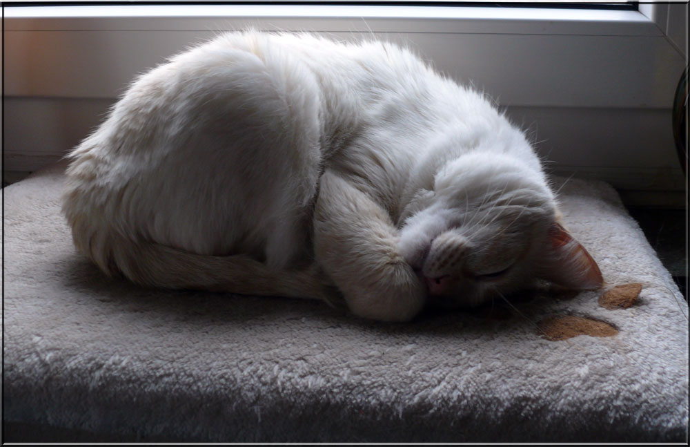 Unsere Europäisch Kurzhaar :-) ... Die jetzt einen amerikanischen Namen hat... weil sie gar nicht groß und dicklich und kurzbeinig ist und einfach nicht FRIEDA heißen kann, sondern ein kleines, niedliches Bonsai, super goldig, und genau so muss auch ihr Name sein :- )