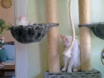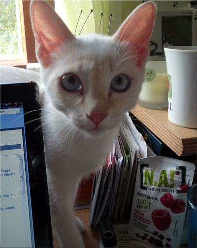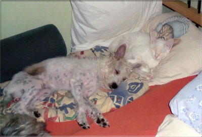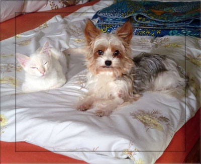 Zambu wechselt seine Freundschaften und - ja ganz nebenbei bemerkt - seine Schlafpartnerschaften häufig. Heute ist es mal Emma, neben die er sich positioniert hat, als sei das immer so. Hoffentlich bildet sie sich nicht allzu viel darauf ein... denn morgen... tjaaaa morgen kann das alles schon wieder gaaanz anders sein... Männer!!!!