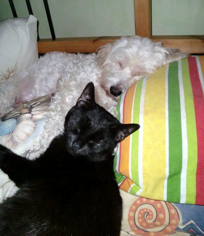"Gastgeber" Leo, dem diese hundefreundliche Auto "gehört", duldet meine zwei Pfoten ganz gelassen. So sind sie halt, die Tiroler ;-)